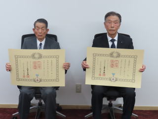 | 令和7年秋の叙勲伝達式 元士別市消防団 分団長 山下 隆氏、同じく分団長の大久保 健一氏が令和7年秋の叙勲で「瑞宝単光章」を受章されました。 山下氏は、昭和48年から平成23年まで38年余りにわたり消防団員としての任を全うされました。 大久保氏は、昭和51年から平成24年まで36年余りにわたり消防団員としての任を全うされました。 お二方とも消防団活動を通じて地域住民の生命、身体及び財産を守るとともに、団員育成にも努められ、地域の消防防災活動に果たした功績は多大なものがございました。 ![]() ![]() |